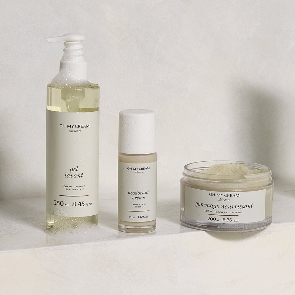 A creamy gel with a generous foaming lather that cleanses without drying the skin, leaving it soft and comfortable.